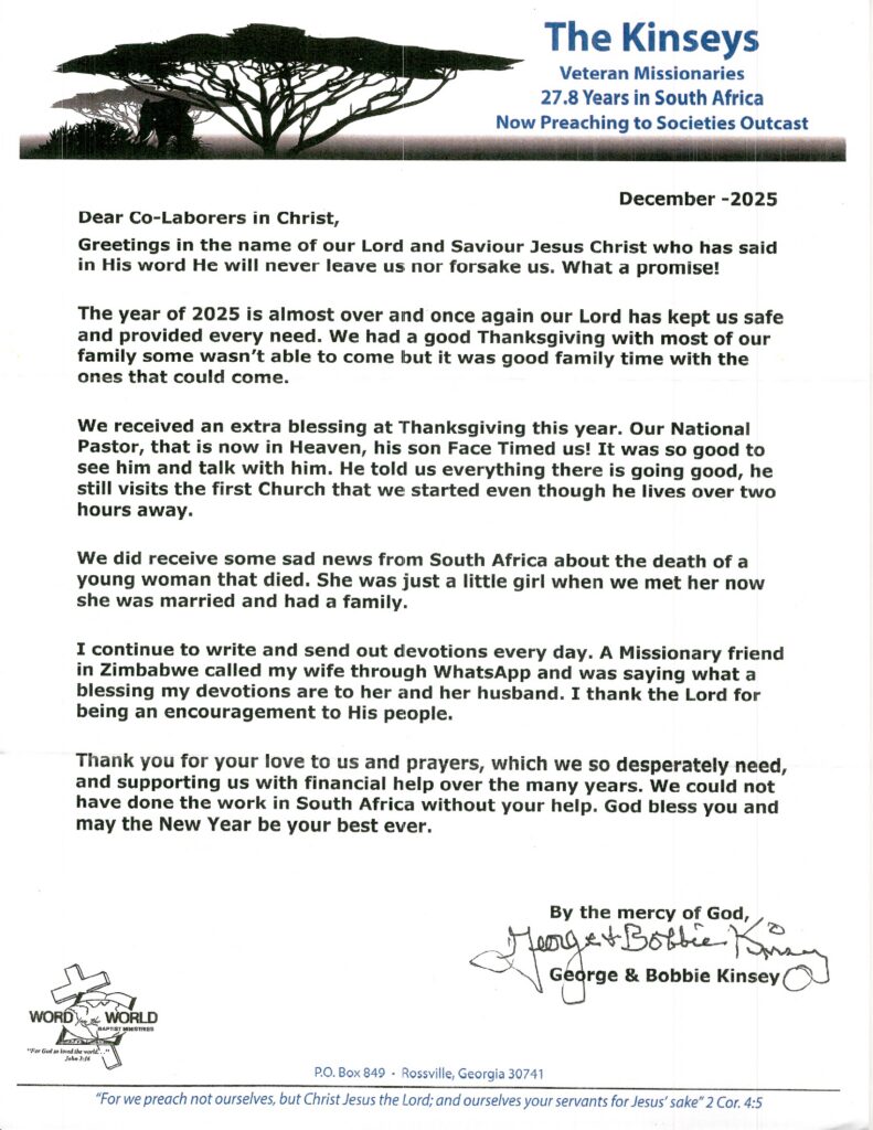 Missionary Newsletters