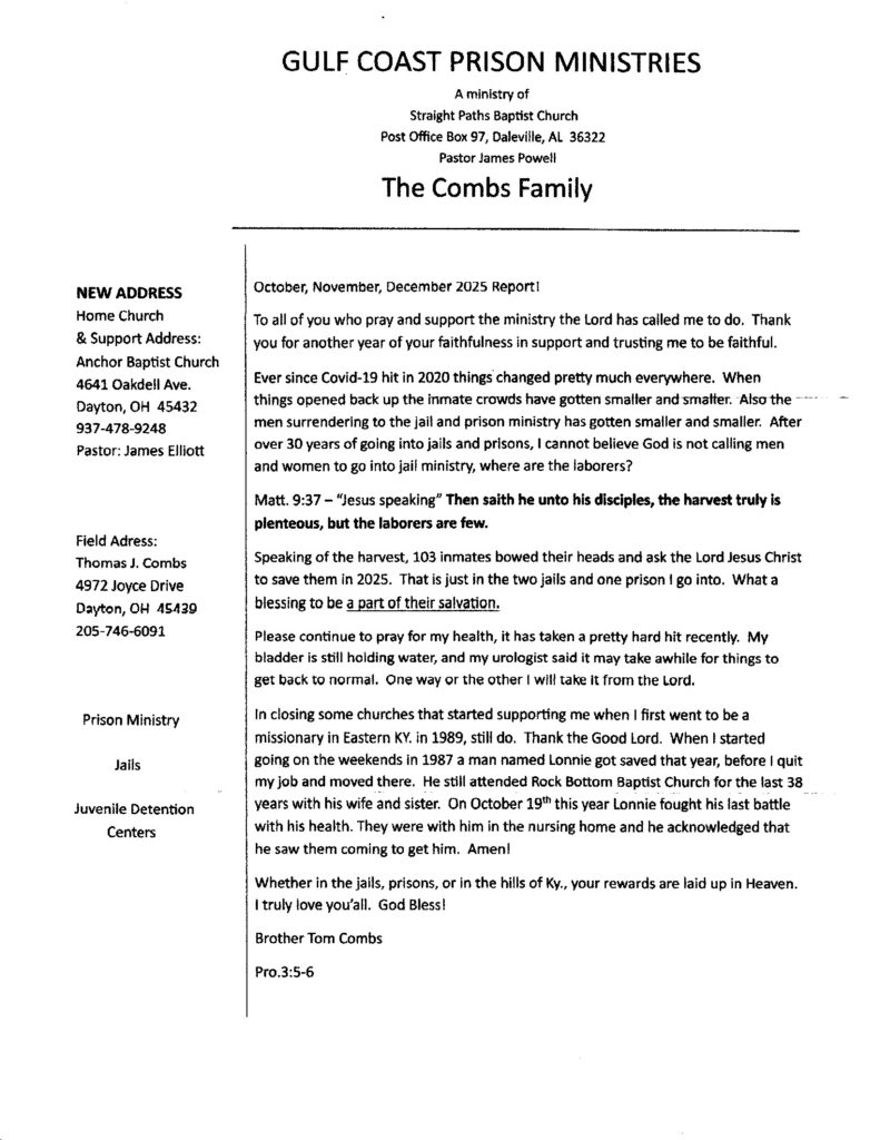 The Combs Family – Golf Coast Prison Ministries