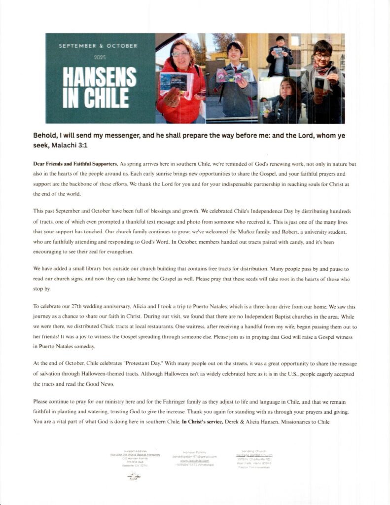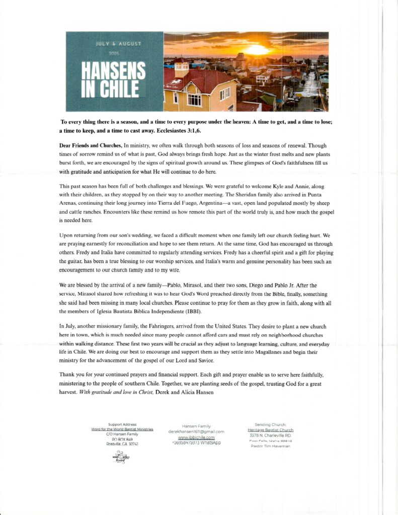 Missionary Newsletters