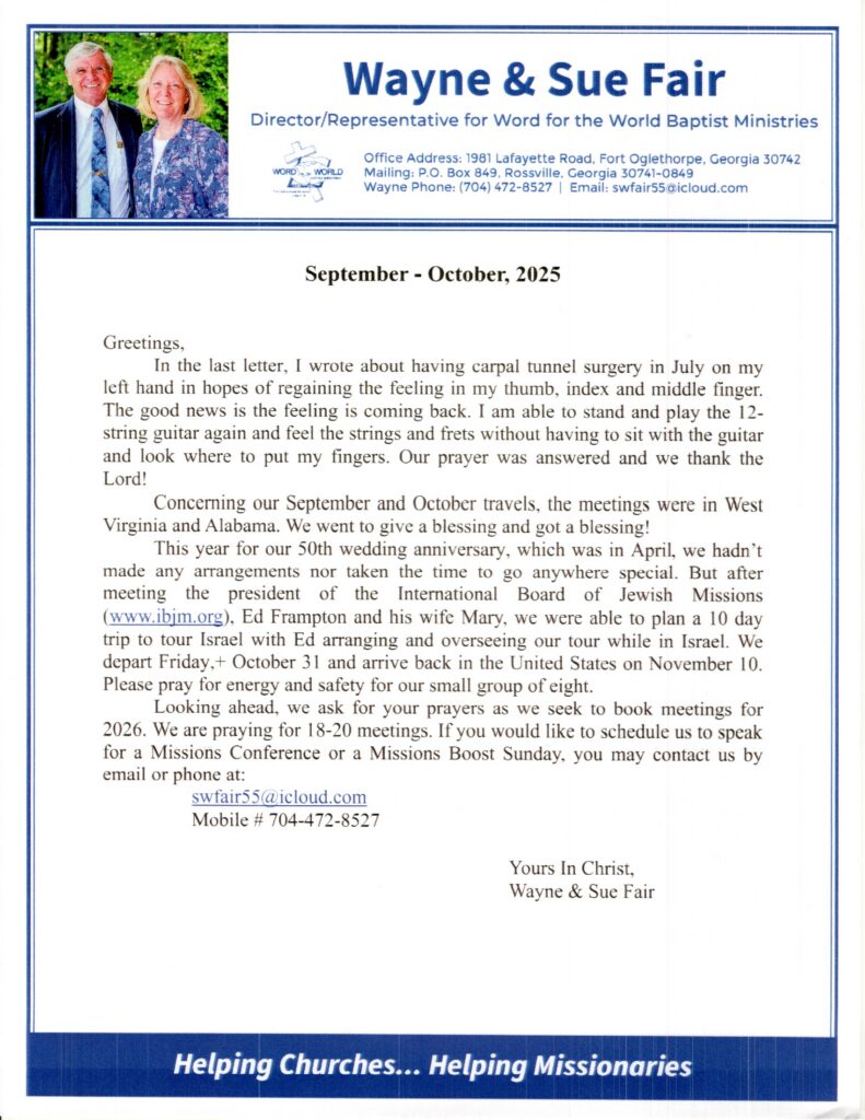Missionary Newsletters